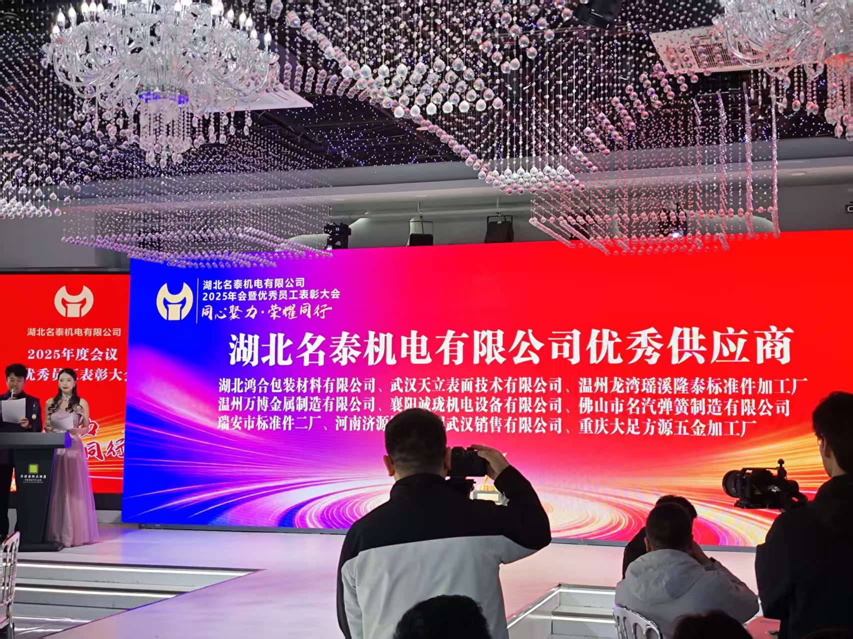 大會現(xiàn)場,湖北名泰機電有限公司對過去一年來在合作中表現(xiàn)突出的優(yōu)秀員工、優(yōu)秀供應(yīng)商進行了隆重表彰,我司憑借長期以來的穩(wěn)定合作、嚴(yán)苛品控與貼心服務(wù),成功斬獲“優(yōu)秀供應(yīng)商”榮譽,這既是對雙方25載攜手同行的高度認(rèn)可,也是對我司綜合實力的充分肯定。